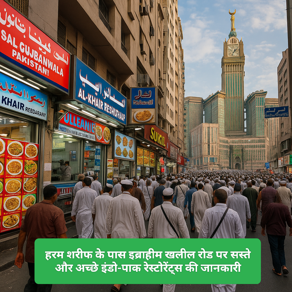 हरम शरीफ के पास इब्राहीम खलील रोड पर सस्ते और अच्छे इंडो-पाक रेस्टोरेंट्स की जानकारी