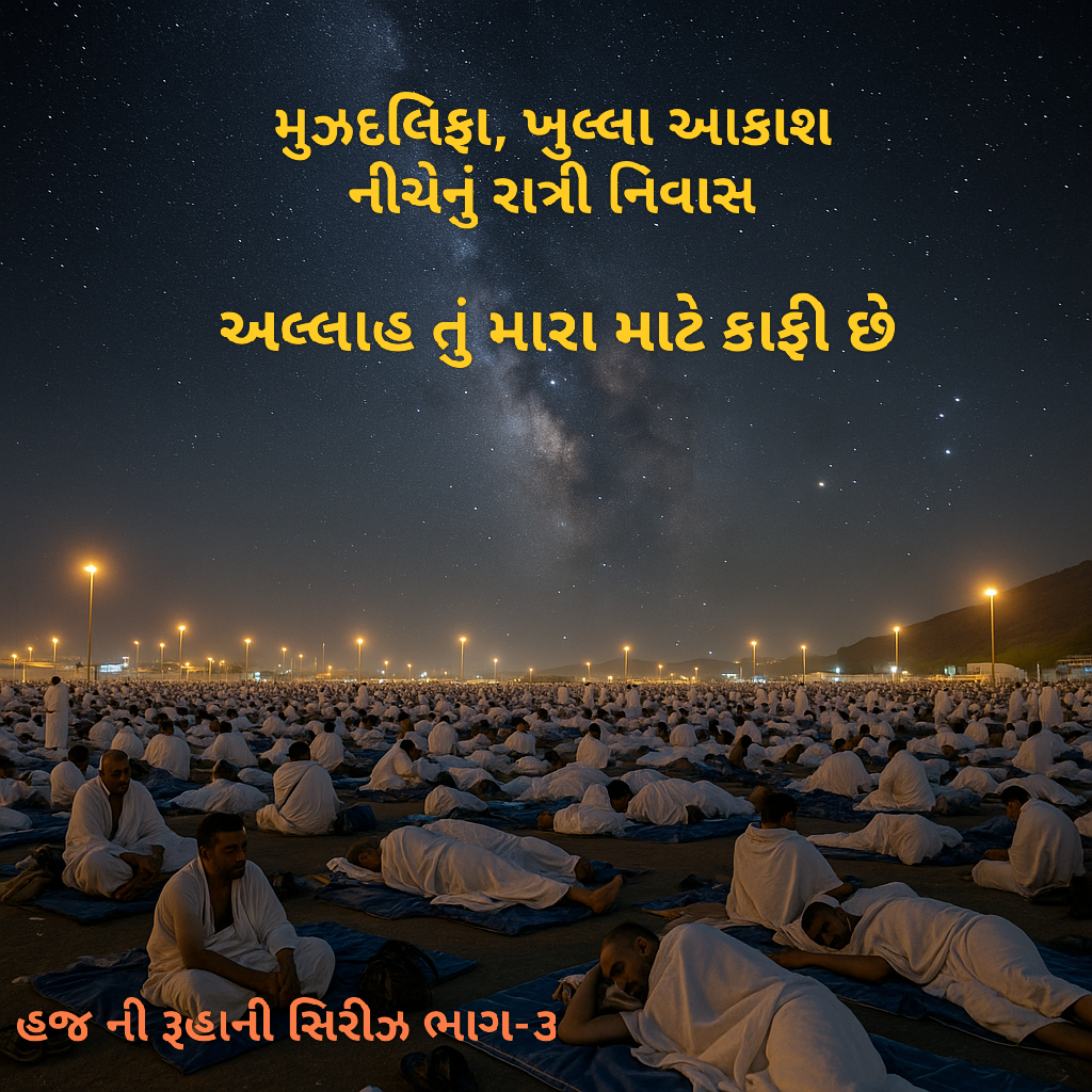 અરફાતના પવિત્ર દિવસ પછી, હાજીઓ મુઝદલિફા તરફ ચાલે છે. આરામ માટે નહિ, પણ સાચા અર્થમાં સબ્ર અને તવક્કુલના પરિક્ષણ માટે.